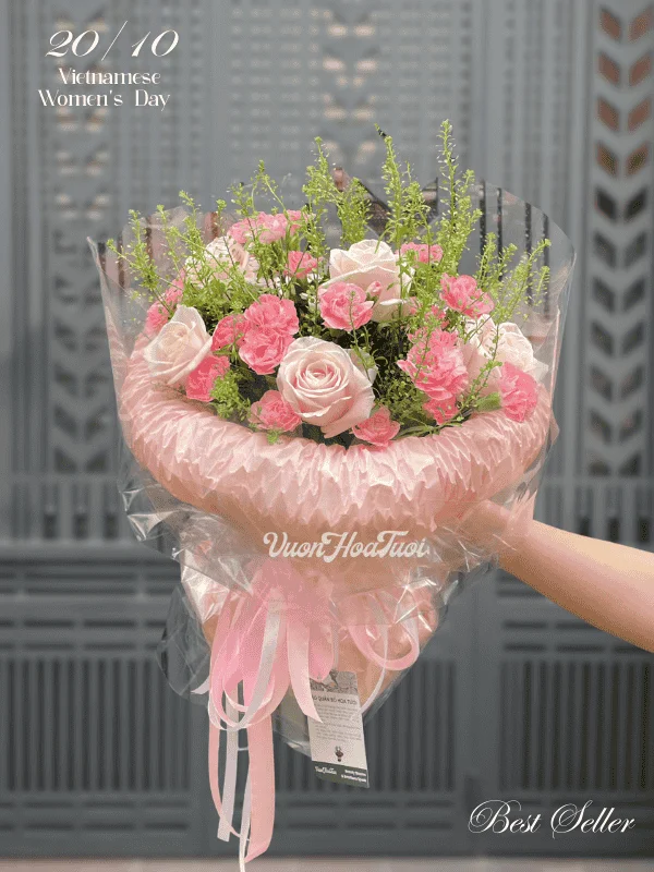 - Bó tặng ngày phụ nữ Việt Nam này không chỉ là một món quà, mà còn là lời tri ân sâu sắc đến những người mẹ, người vợ, người yêu, đồng nghiệp… đã luôn đồng hành và ủng hộ bạn.