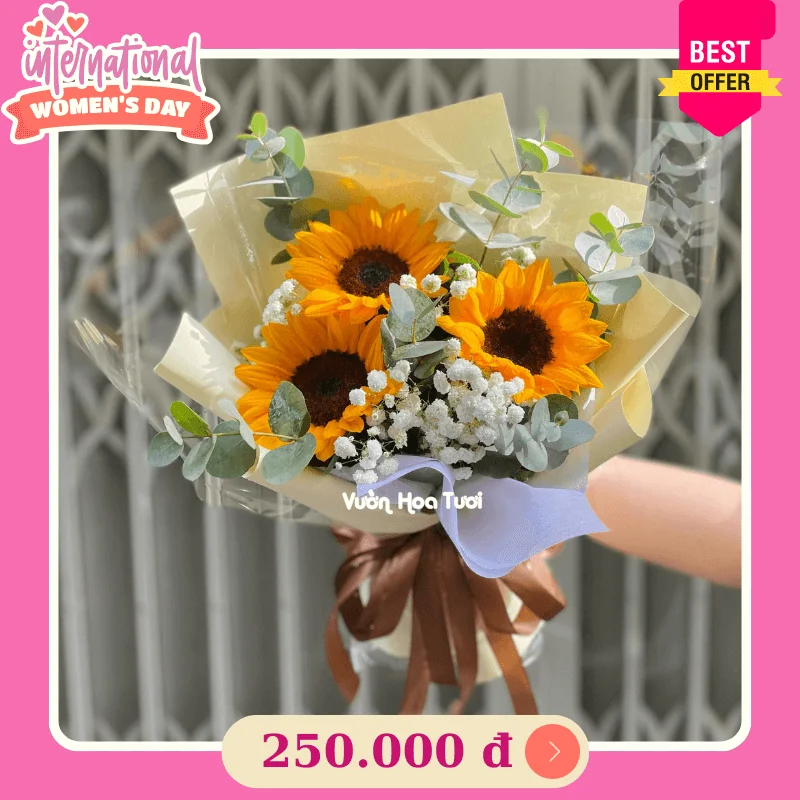 Phiên bản Bó hoa 8 tháng 3 Hướng Dương Tươi Vui sẽ cùng bạn gửi trao yêu thương đến cho những ngừoi con gái trong ngày lễ đặc biệt quan trọng trong năm này!