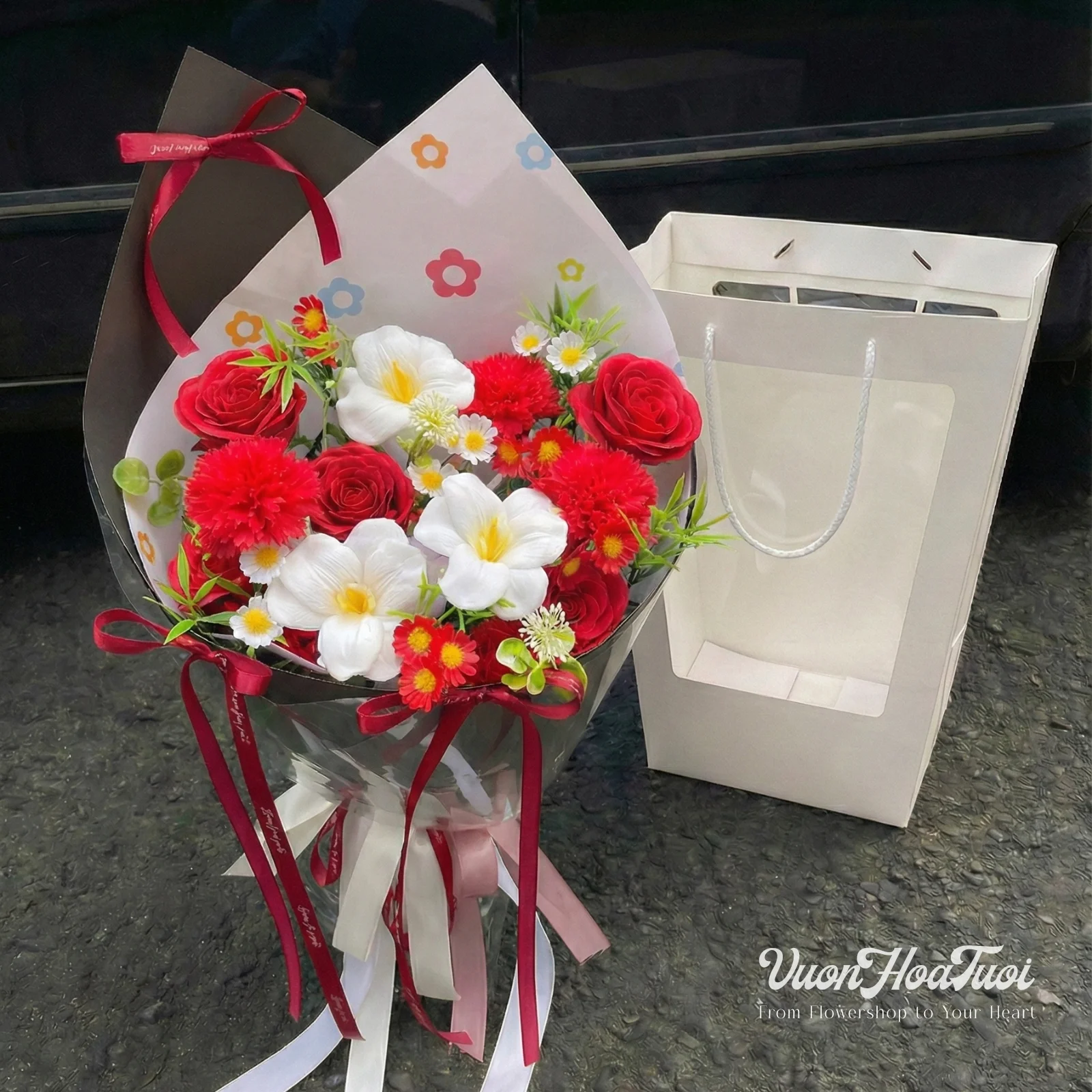 - Thiết kế tinh tế: Bó hoa được phối cùng giấy gói phong cách Hàn Quốc trang nhã, tạo nên nét “tinh khôi” hiện đại, không phô trương nhưng đủ để làm rung động trái tim người nhận.