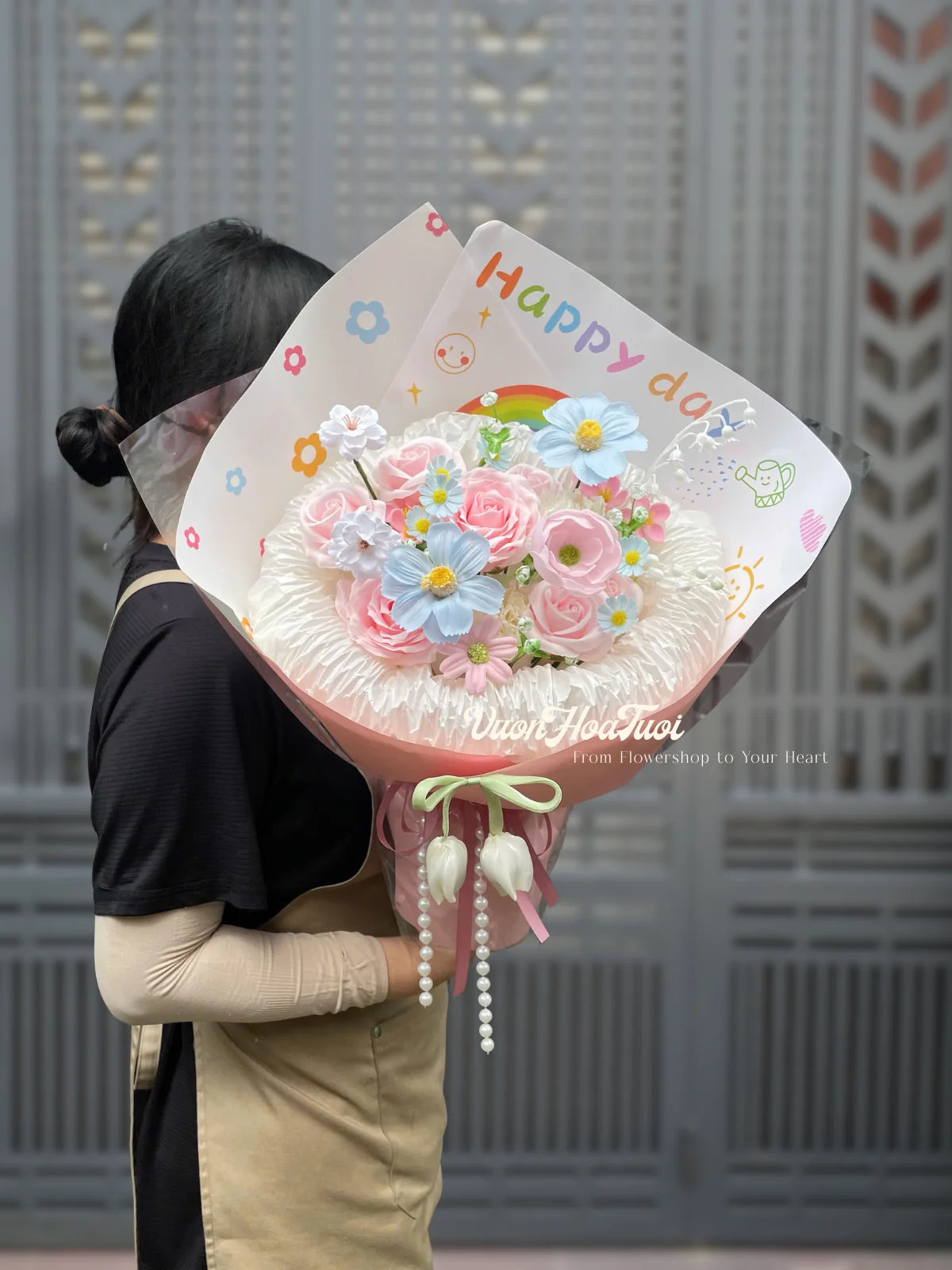 Hoa Sáp Thơm, Phù hợp tặng nhiều dịp khác nhau. Có kèm Túi và Thiệp Miễn Phí