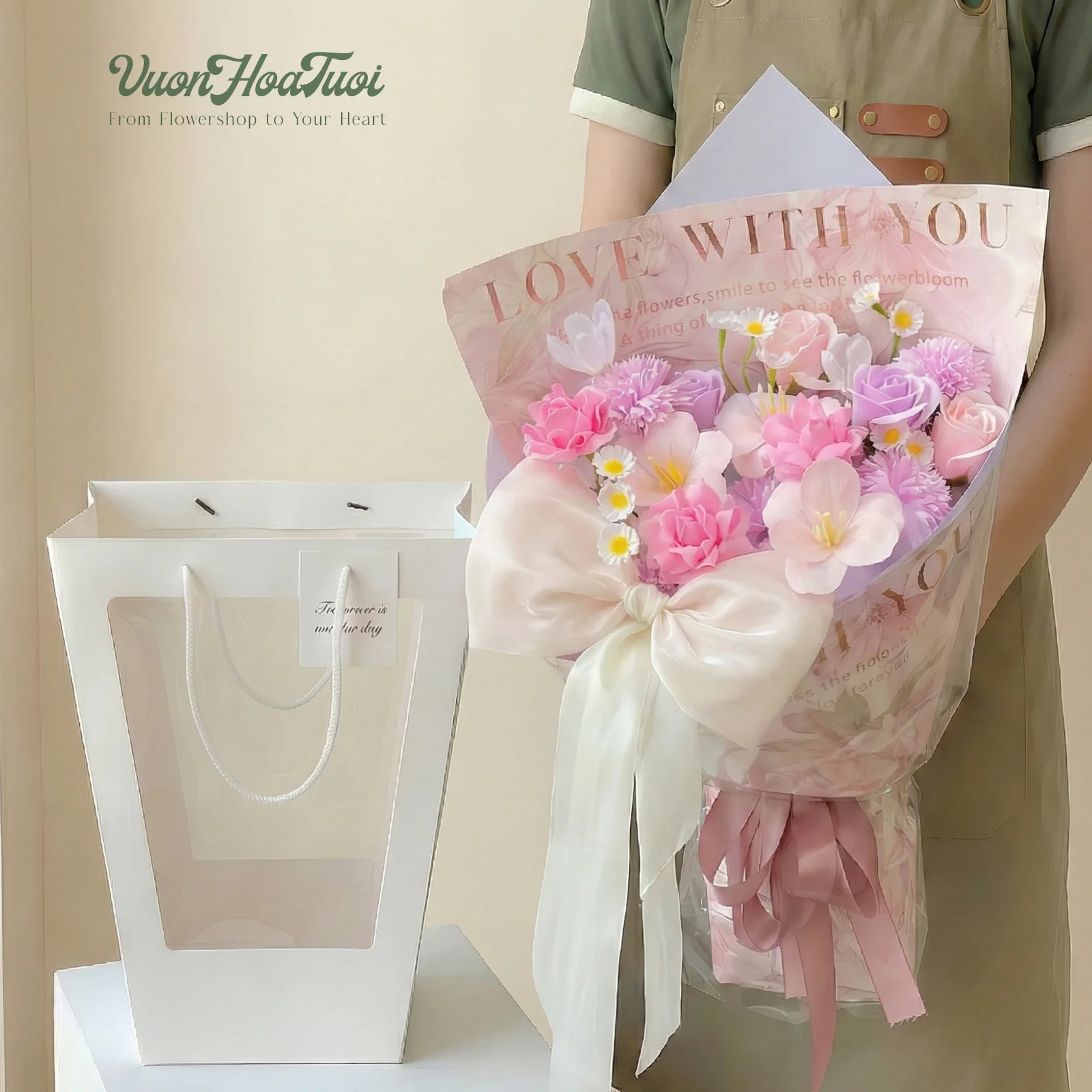 - Hương thơm dịu nhẹ: Bó hoa tỏa ra mùi hương thoang thoảng, dễ chịu, mang lại cảm giác thư giãn và lưu hương lâu dài trong không gian.