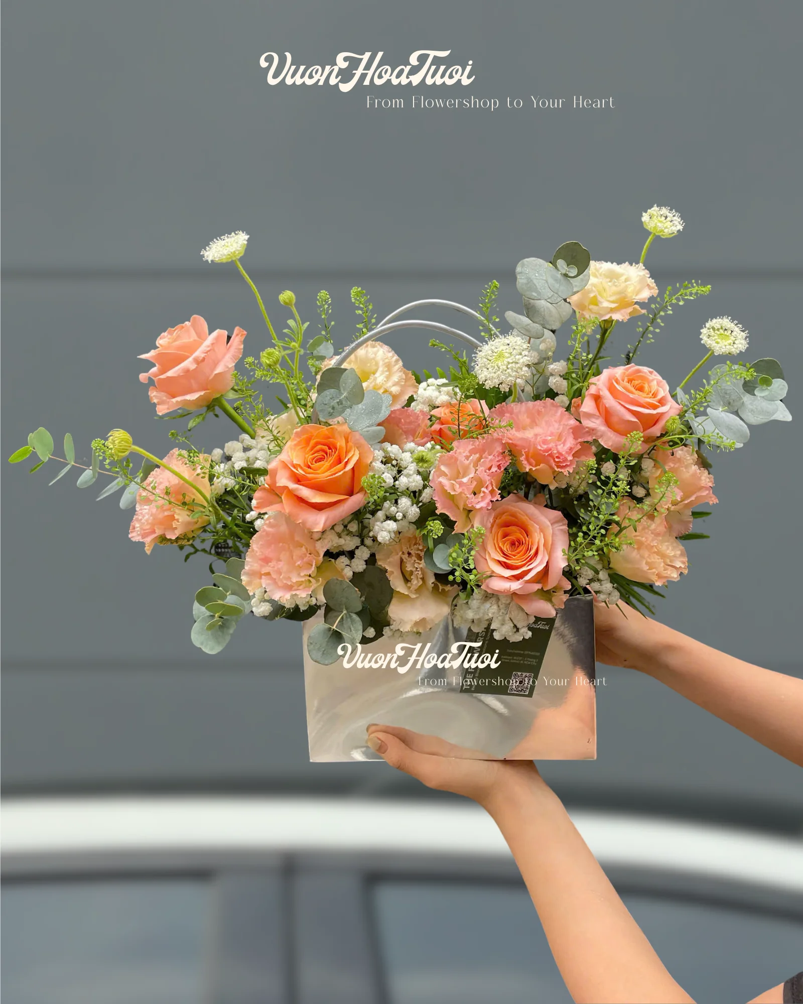 Orange Spirit không chỉ là một món quà, mà còn là lời chúc mừng sinh nhật chân thành, mang theo hy vọng về một năm mới tràn đầy sức sống và thành công. Mỗi đóa hoa trong giỏ như một nụ cười rạng rỡ, gửi gắm những tình cảm ấm áp và lời chúc tốt đẹp nhất đến người nhận.