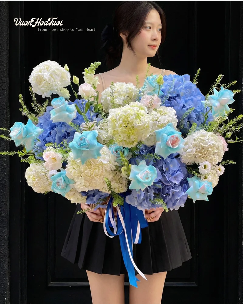 Hoa Tú Cầu (Hydrangea) từ lâu đã nổi tiếng với những cánh mỏng manh, chen chúc nhau tạo thành một cầu hoa xinh xắn. Trong ngôn ngữ loài hoa, Tú Cầu tượng trưng cho lòng biết ơn và những cảm xúc chân thành. Mẫu Spirit Hydra với tông màu xanh nhã nhặn không chỉ mang lại cảm giác bình yên, hy vọng mà còn thể hiện sự tinh tế của người tặng. Đây là lựa chọn hàng đầu cho các dịp sinh nhật cấp trên, đồng nghiệp hoặc những người yêu thích vẻ đẹp thanh lịch, không phô trương.
