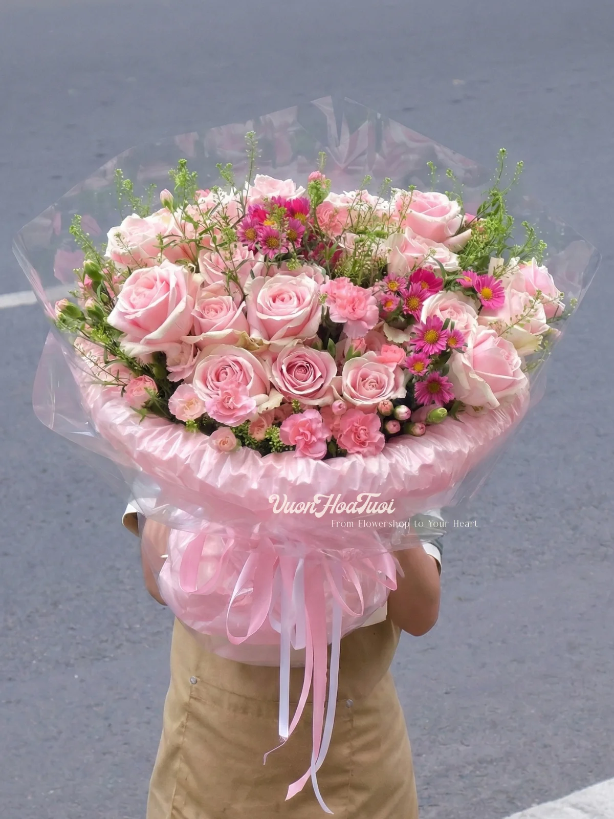 Hoa Bó Tặng Mẹ Sắc Hồng Thơ Mộng