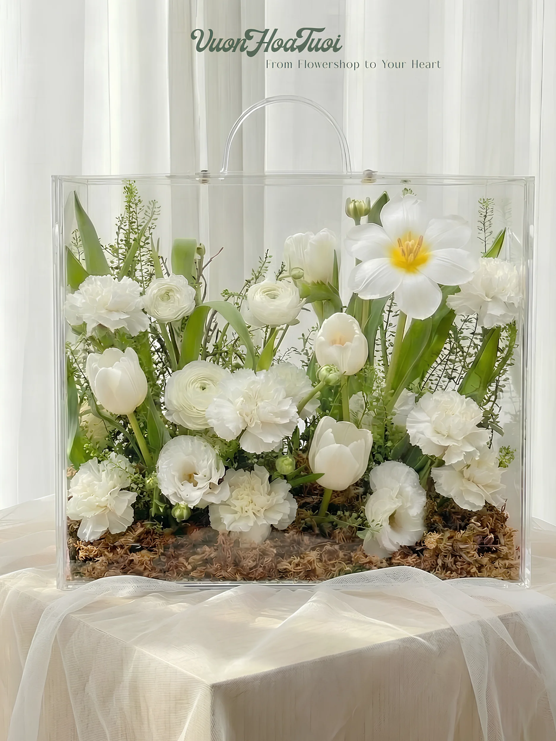 Hộp Hoa Mica Tulip White Beauty