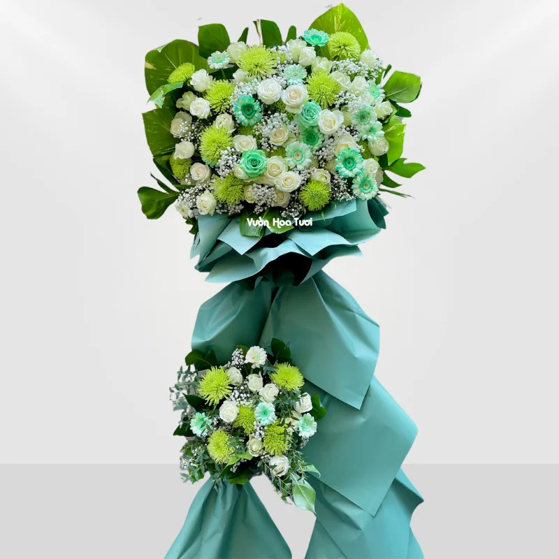 Kệ Hoa được sáng tạo từ các bông hoa xanh mang phong cách vườn, toạ cảm giác tươi mát cho sự kiện của khách hàng, đối tác.
