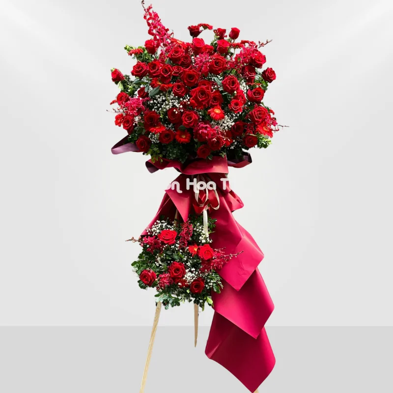 Khai trương là một dịp trọng đại, đánh dấu sự khởi đầu mới đầy hứa hẹn. Và để ngày khai trương thêm phần rực rỡ, không thể thiếu những đóa hoa tươi thắm, mang đến không khí tươi vui và may mắn. Trong đó, kệ hoa hồng đỏ lan mokara là một lựa chọn tuyệt vời, kết hợp giữa vẻ đẹp kiêu sa của hoa hồng đỏ và sự thanh tao của lan mokara, tạo nên một tác phẩm nghệ thuật đầy ấn tượng.