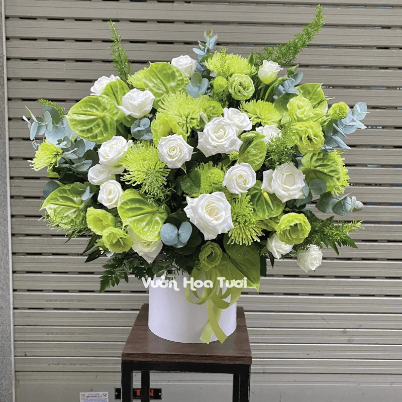 Mỗi cánh hoa là một lời chúc, mỗi chiếc lá là một hy vọng. Lẵng hoa khai trương tone xanh lá này không chỉ là một món quà, mà còn là một thông điệp yêu thương, một lời cầu chúc chân thành cho sự khởi đầu mới đầy may mắn và thành công.